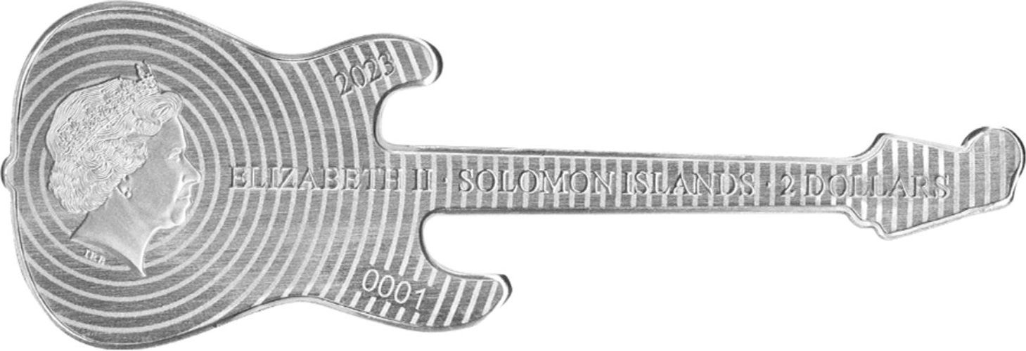 2 долари — Карл III (Daphne Blue Fender Stratocaster) 2023 – 2023 Соломонові Острови