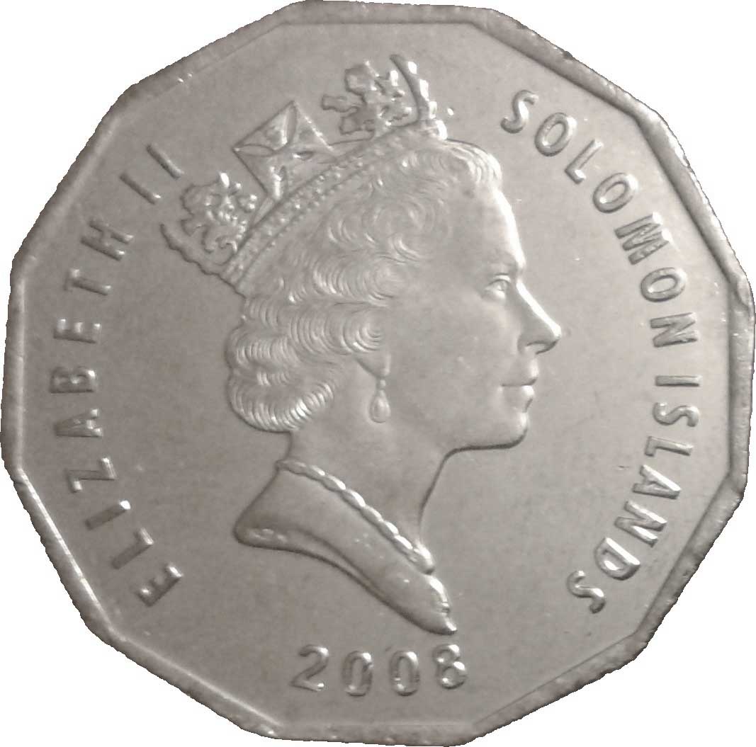 50 центів — Єлизавета II (3-й портрет; магнітна) 2008 – 2010 Соломонові Острови