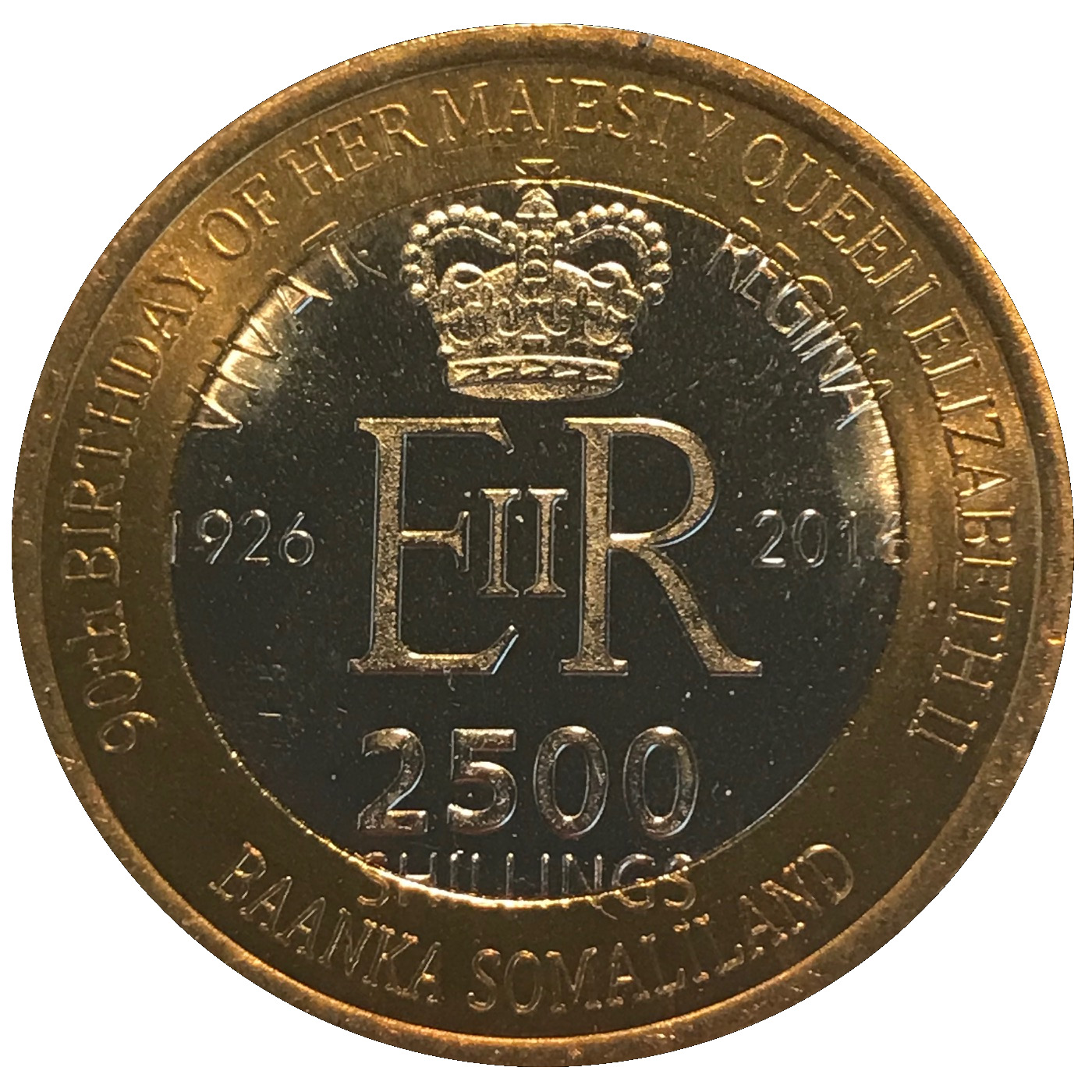 2500 шилінгів (90-річчя Єлизавети II — королеви Канади) 2016 – 2016 Сомаліленд