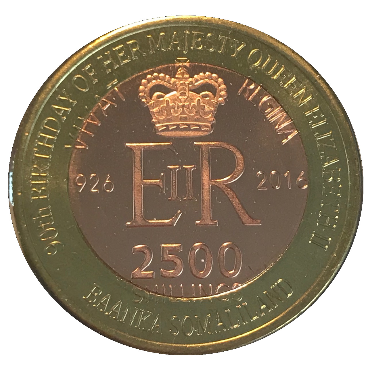 2500 шилінгів (90-річчя Єлизавети II — королева Цейлону) 2016 – 2016 Сомаліленд