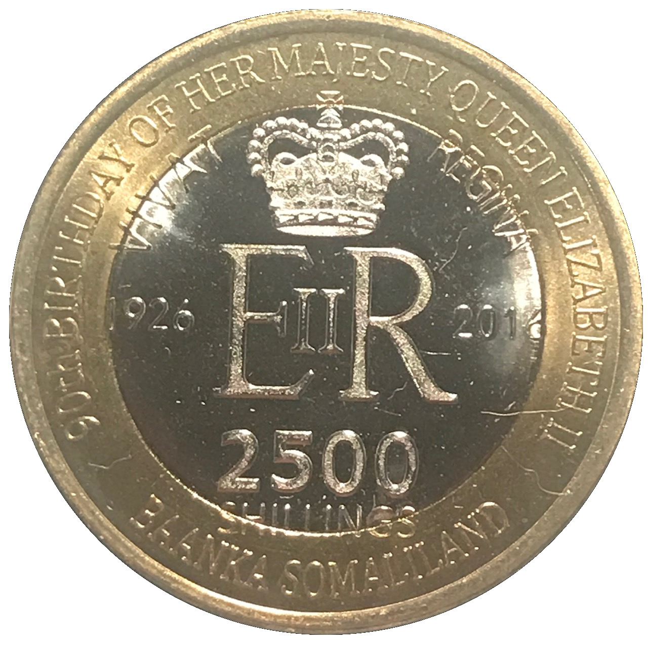 2500 шилінгів (90-річчя Єлизавети II — королева Тувалу) 2016 – 2016 Сомаліленд