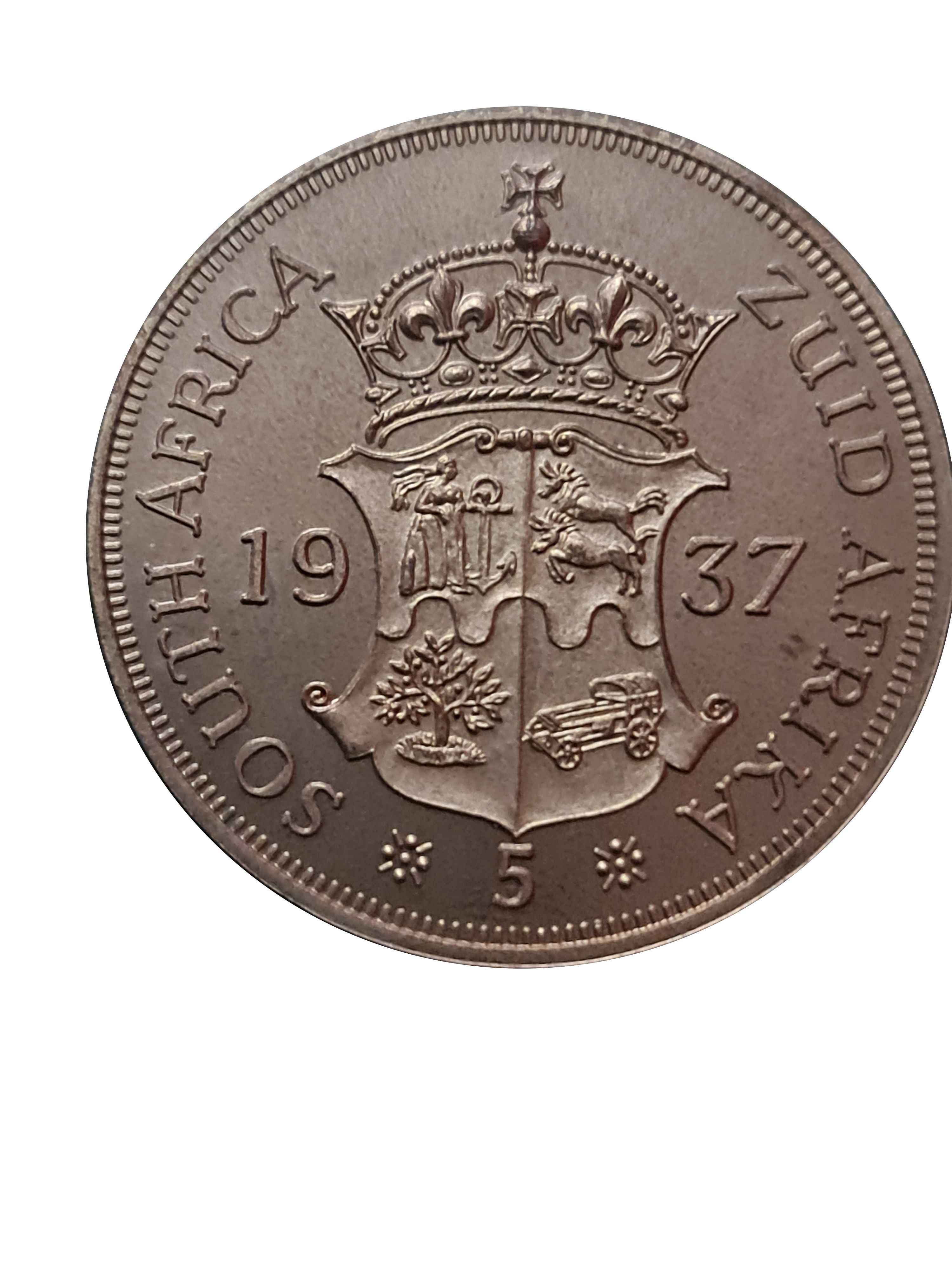 5 шилінгів, зразок 1937 року, мідь 1937 – 1937 Південна Африка