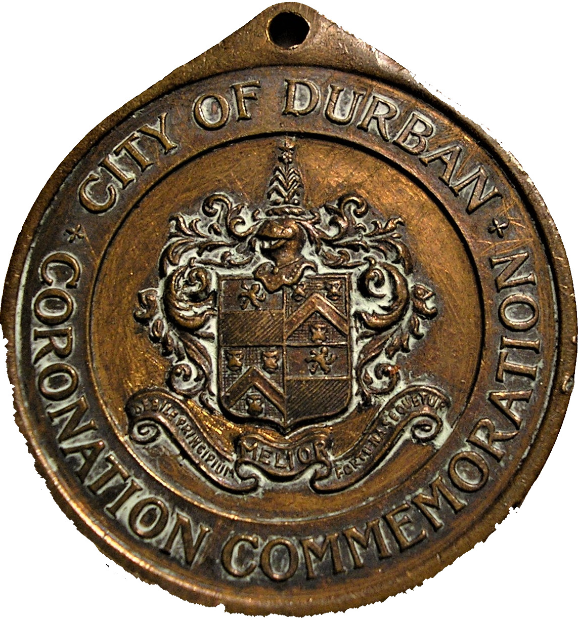 Опис: Герб міста Дурбан з його девізом, напис навколо на рельєфному краю.