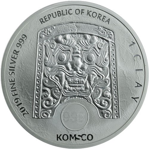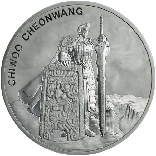 Опис: Щит Чіву Чонванга над прихованою захисною ознакою та логотипом KOMSCO, оточений датою, пробою, номіналом та Республікою Корея.