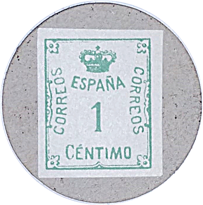 Опис: Поштова марка з білим фоном номіналом 1 цент Іспанії.