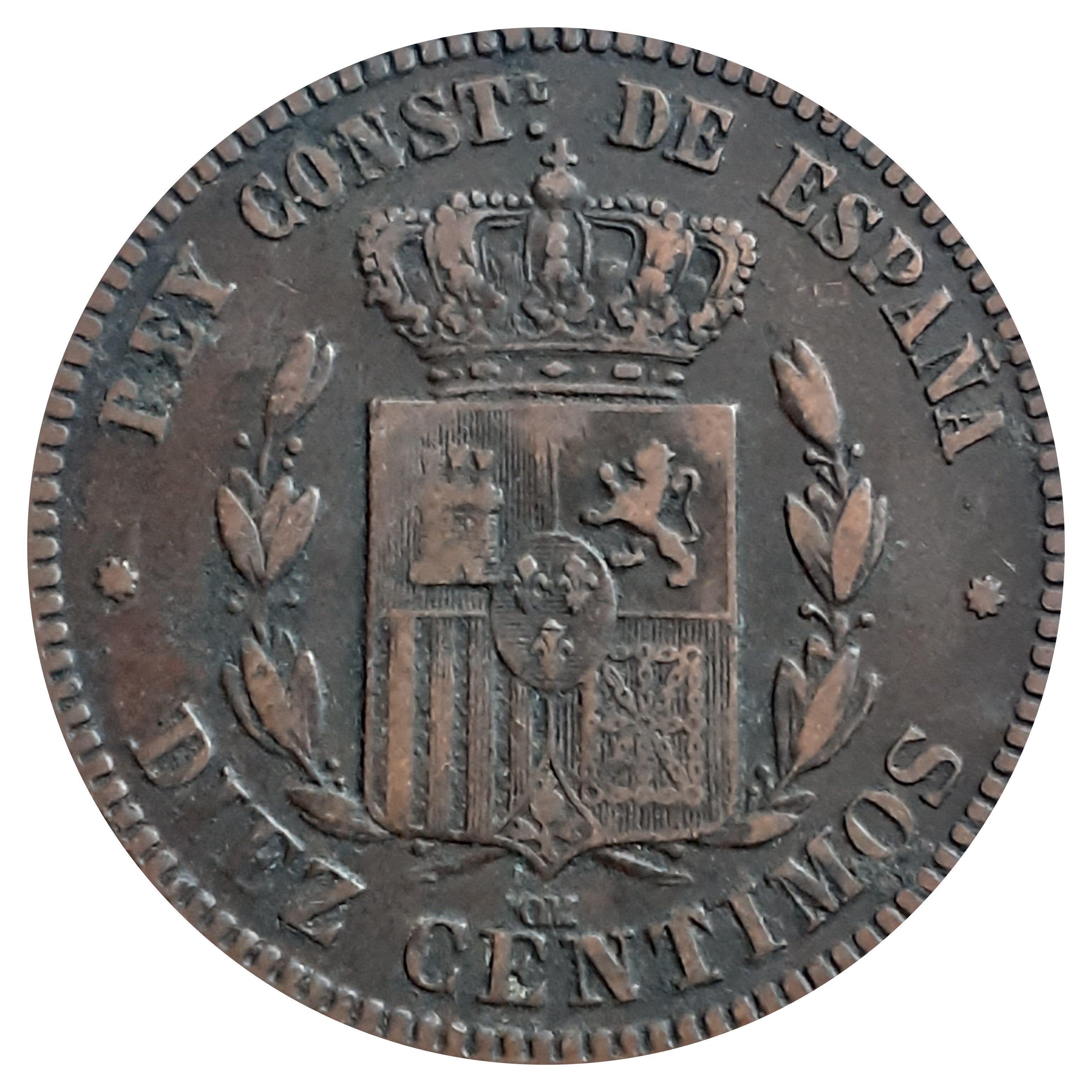 10 сентімо — Альфонсо XII 1877 – 1879 Іспанія