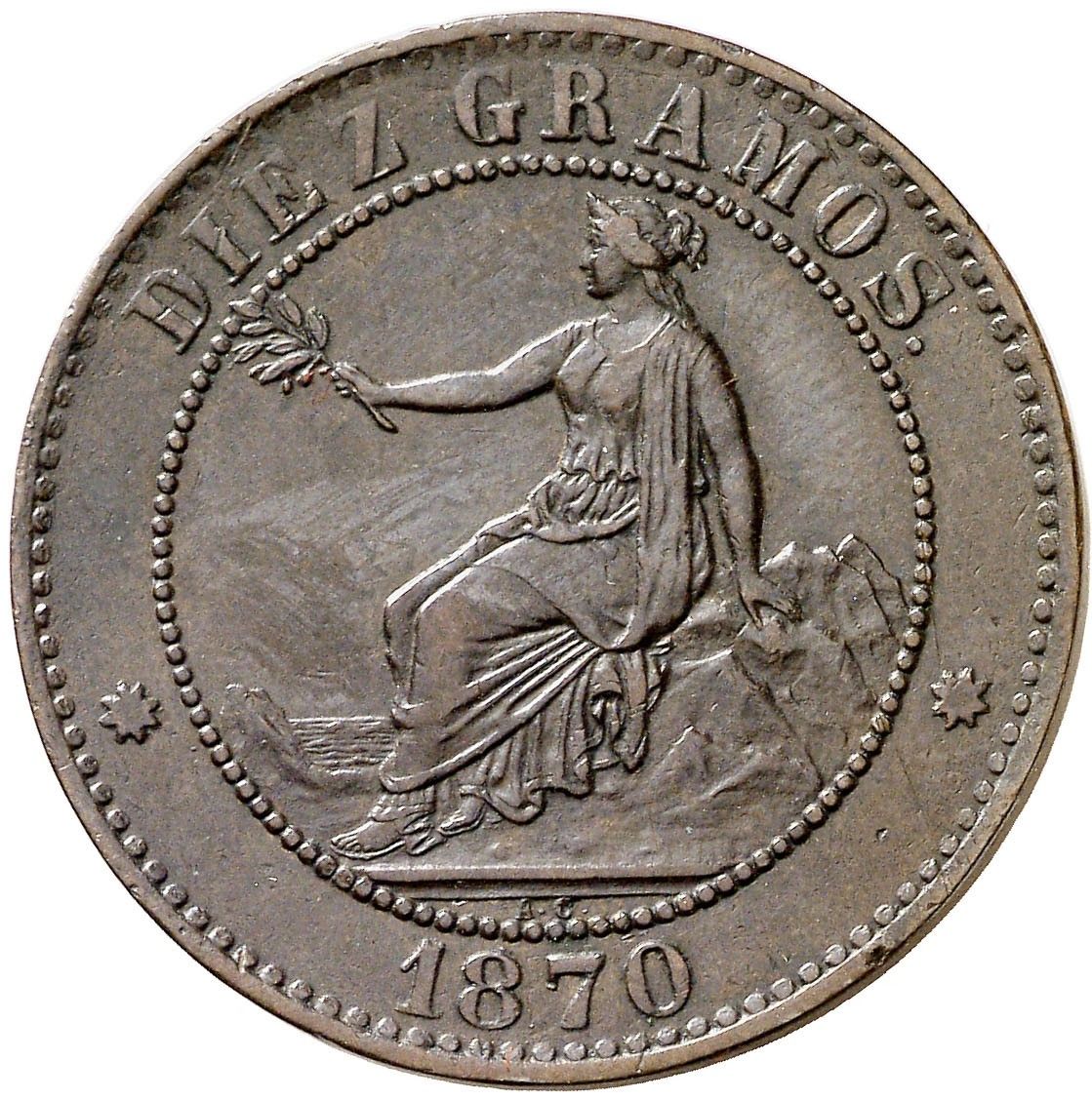 10 сентімос — Тимчасовий уряд (зразок) 1870 – 1870 Іспанія