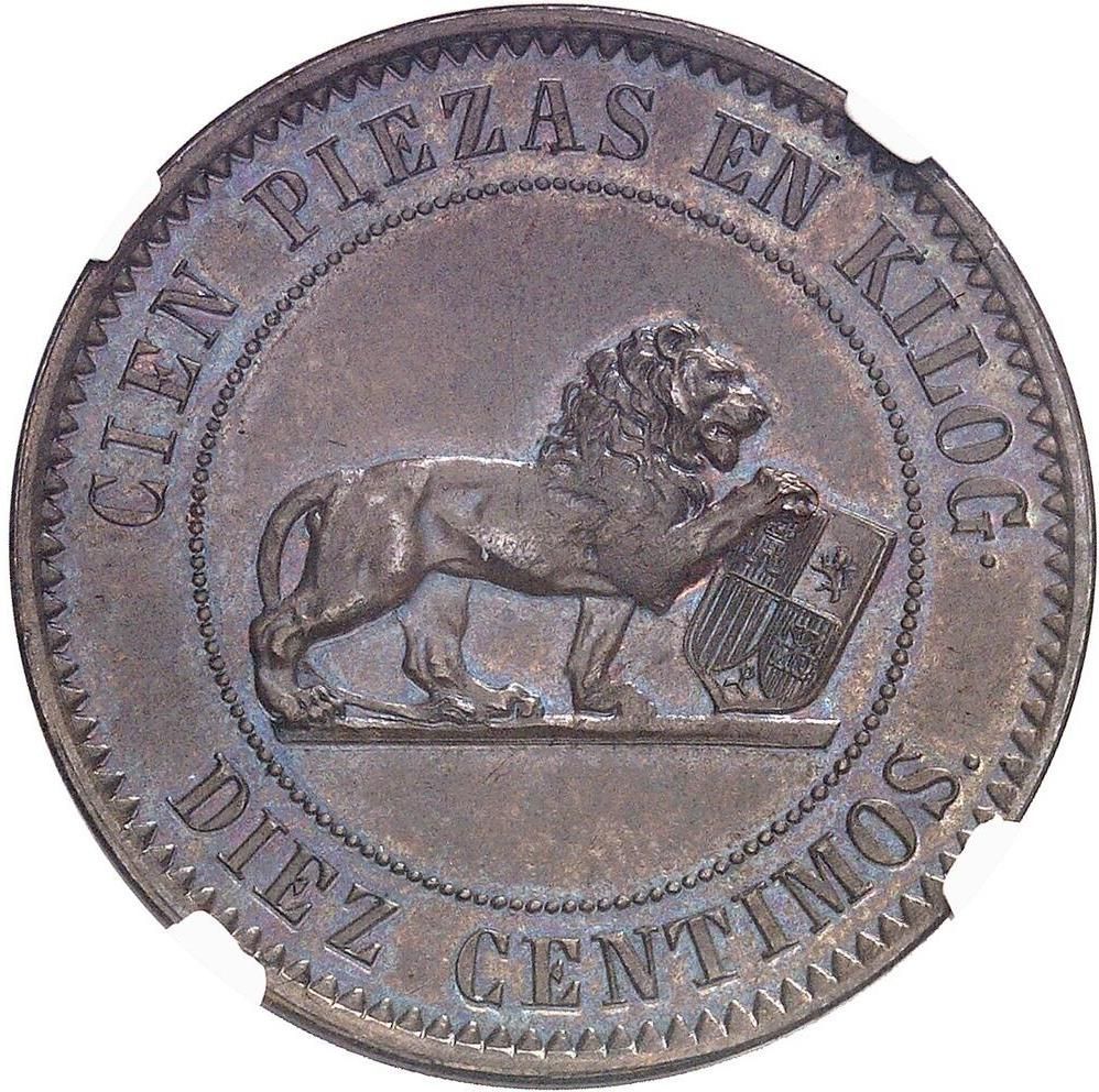 10 сентімос — Тимчасовий уряд (зразок) 1869 – 1869 Іспанія