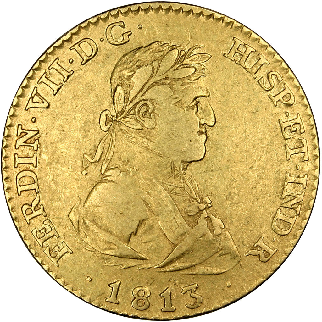 2 ескудо — Фердинанд VII (Мадрид; 2-й портрет) 1813 – 1814 Іспанія