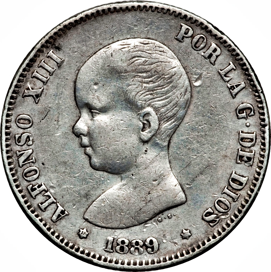 2 песети — Альфонсо XIII (1-й портрет) 1889 – 1892 Іспанія