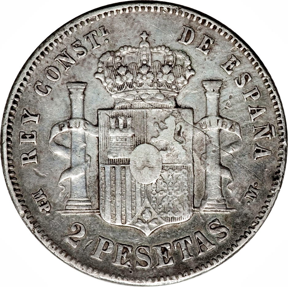Назва: 2 песети — Альфонсо XIII (1-й портрет)