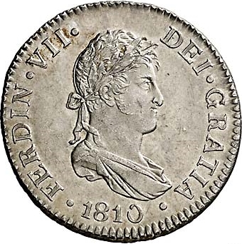 2 реалеса — Фердинанд VII (бюст у лавровому вінку) 1810 – 1833 Іспанія