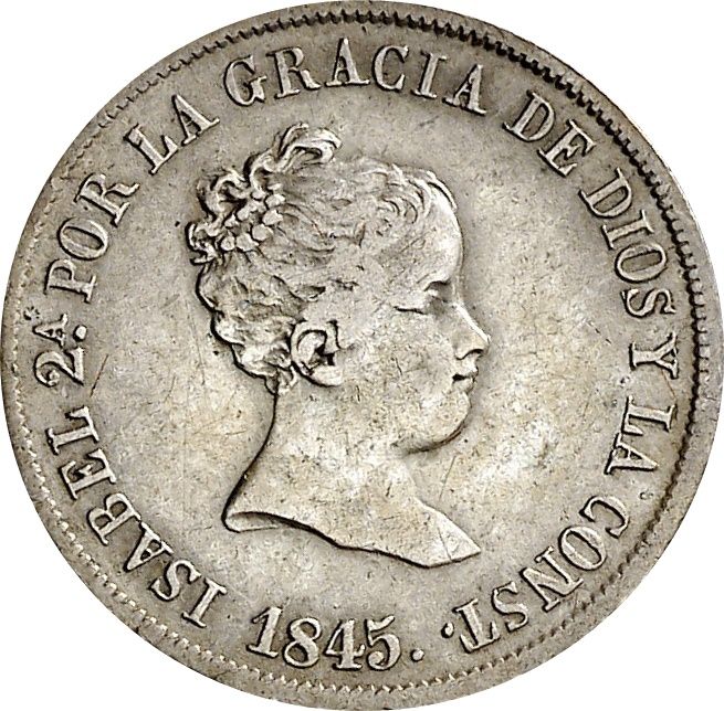 2 реалес — Ізабелла II (1-й портрет; 2-й тип) 1844 – 1851 Іспанія