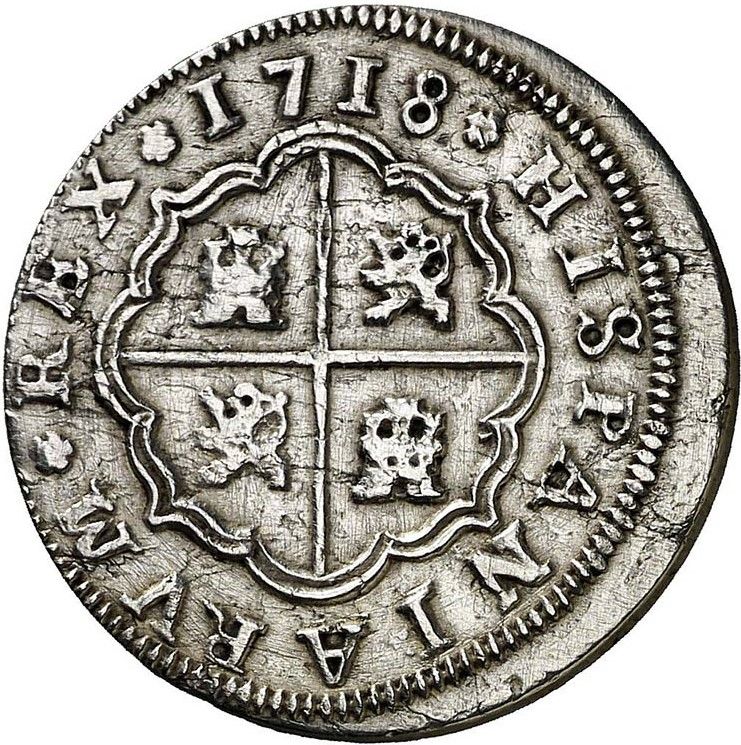 2 реалес — Філіп V (Севілья; 2-й тип; DEI · G) 1718 – 1718 Іспанія