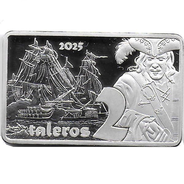 Опис: На задньому плані зображені трищоглові вітрильні кораблі в бойовому порядку. Праворуч зображена фігура пірата в тричвертному профілі, одягненого в трикутний капелюх, пальто з ґудзиками та перехрещеними ременями. Велика стилізована цифра «2» перекриває частину пальто. Над нею вказано рік «2025».