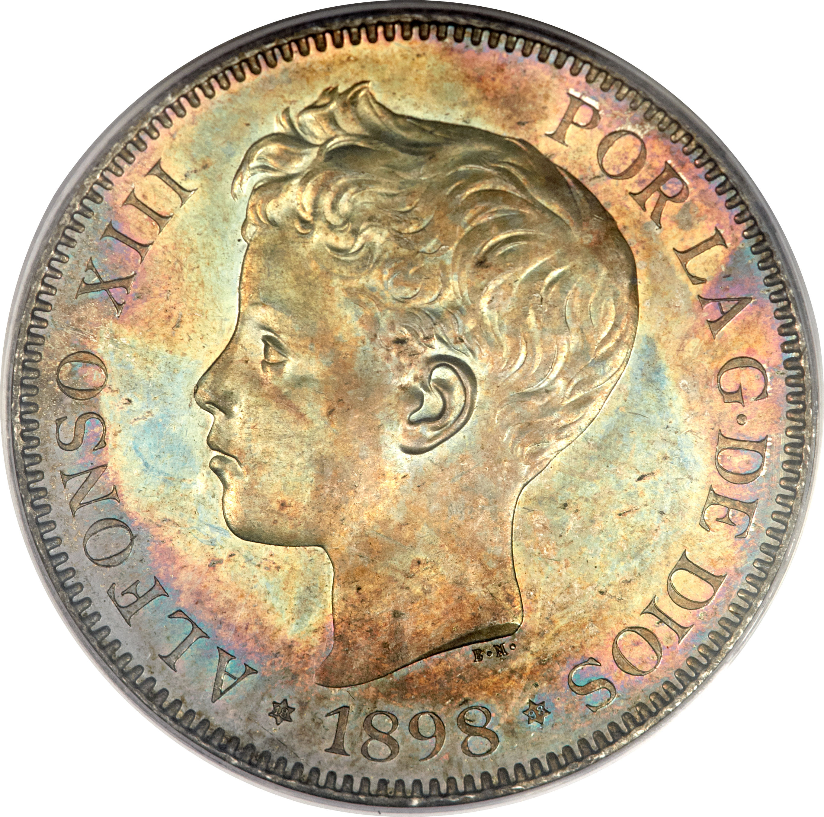5 песет — Альфонсо XIII (3-й портрет) 1895 – 1899 Іспанія