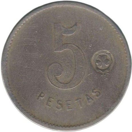 Назва: 5 песет — Union Cooperatista El Reloj y Dignidad