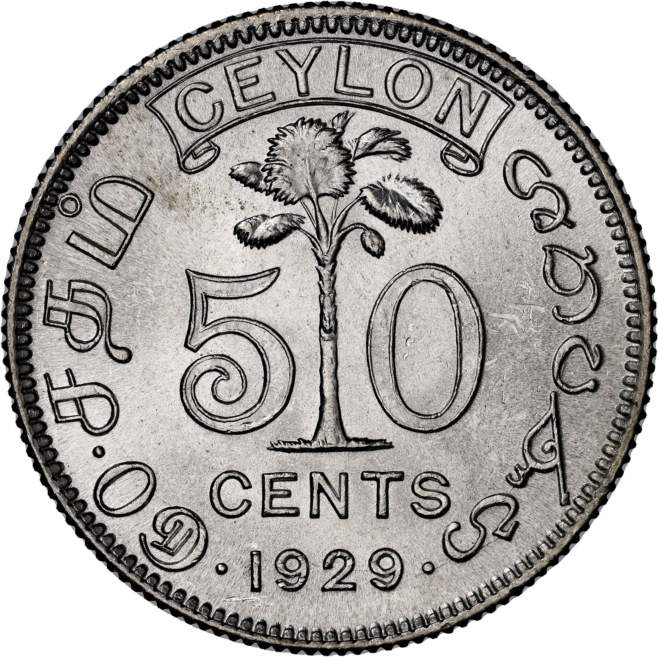 50 центів — Георг V 1919 – 1929 Цейлон