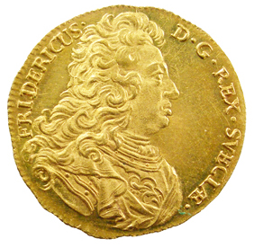 1 дукат — Фрідріх I (монограма короля, тип 2) 1725 – 1728 Швеція