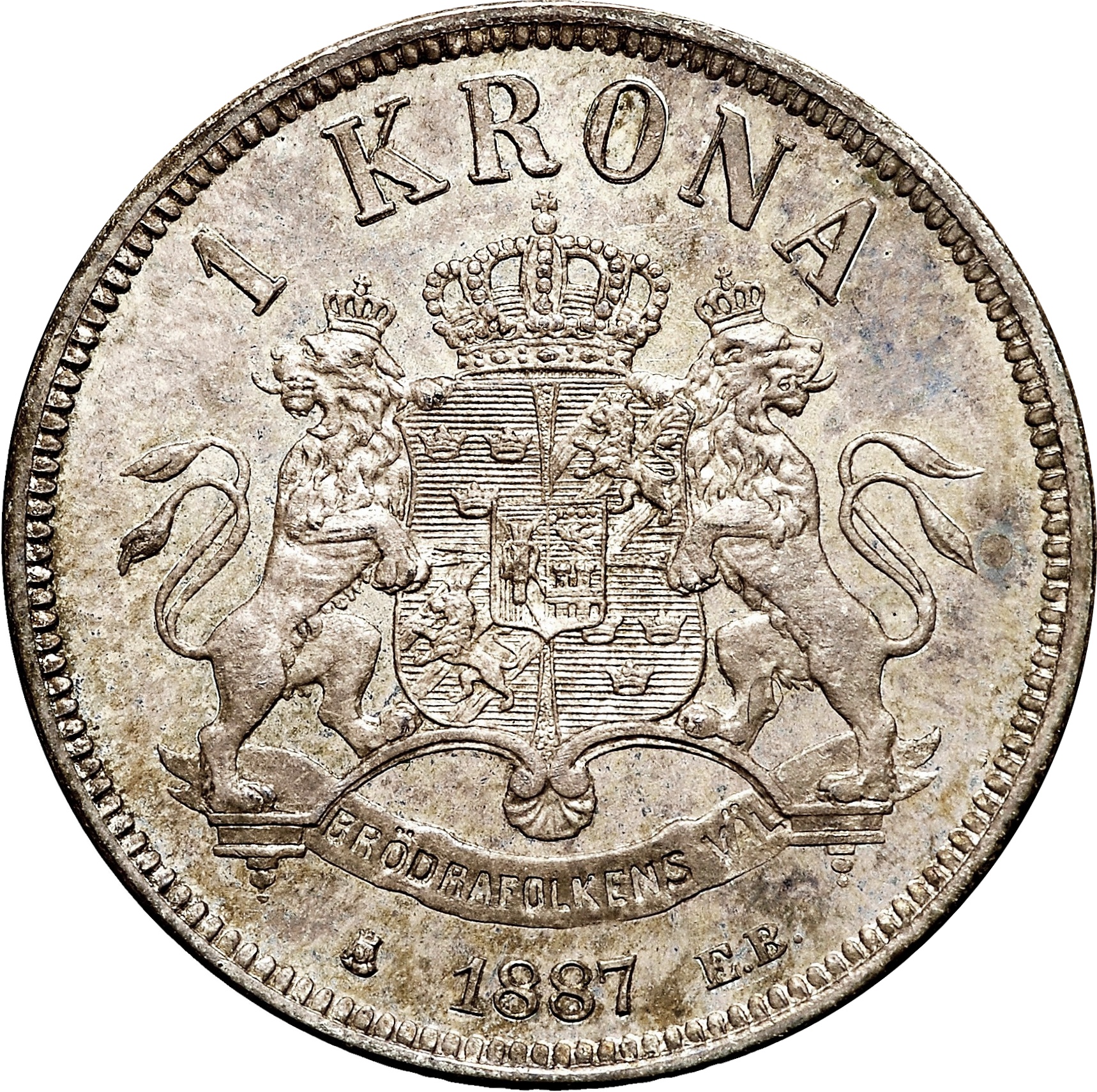 1 крона — Оскар II («OCH» у назві) 1877 – 1889 Швеція