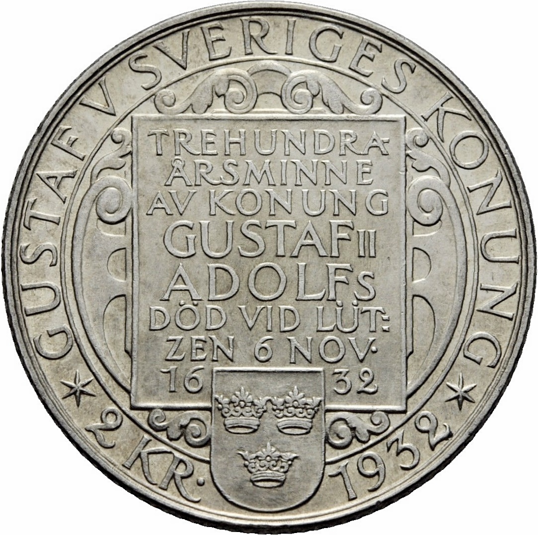2 крони — Густав V (смерть Густава II Адольфа) 1932 – 1932 Швеція