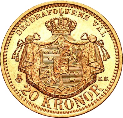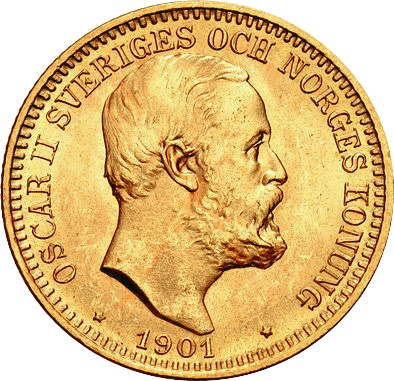 Опис: Голова Оскара II, звернена вправо. Навколо — напис. Дата внизу між зірками.