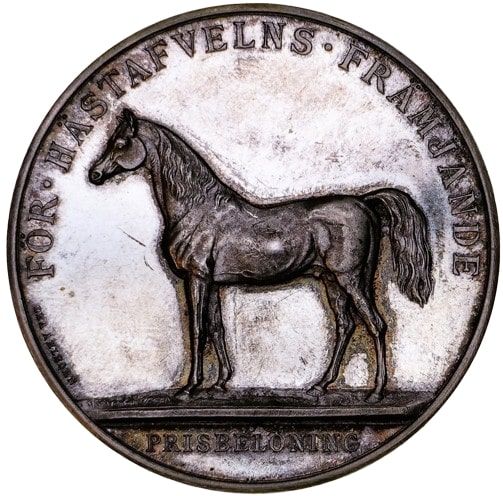 Нагородна медаль — за розвиток конярства — Густав V (1-й портрет) 1908 – 1909 Швеція
