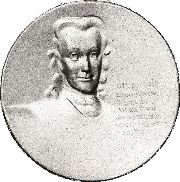 Опис: Портрет шведського короля Густава III з текстом, що пояснює подію.