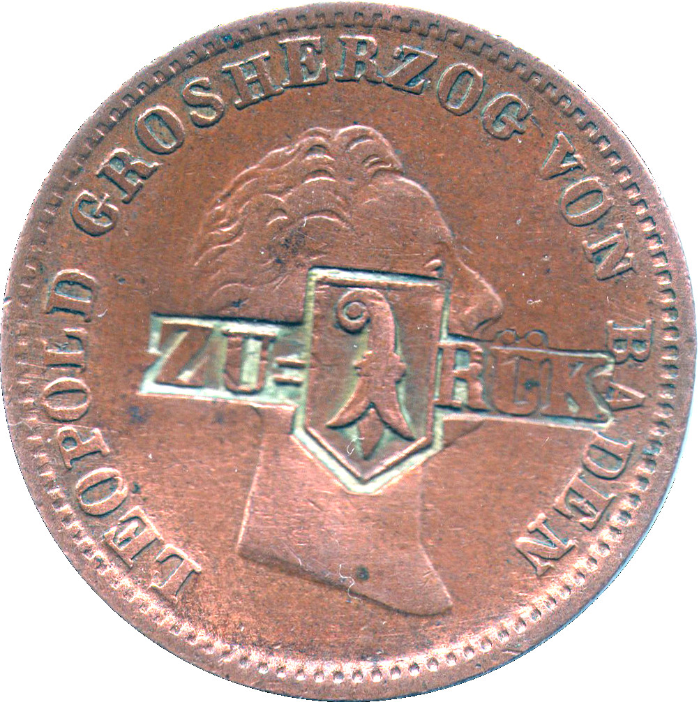 1 кройцер (з контрмаркою) 1844 – 1844 Базель, кантон