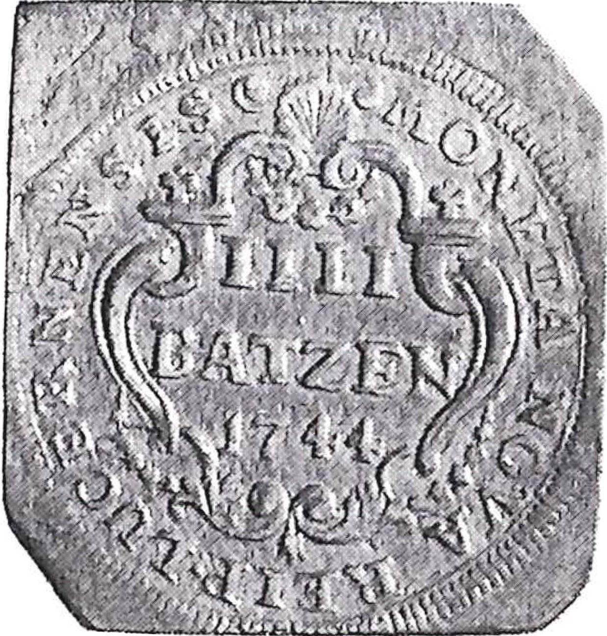 4 батценів (перекарбування Кліппе) 1744 – 1744 Люцерн, місто