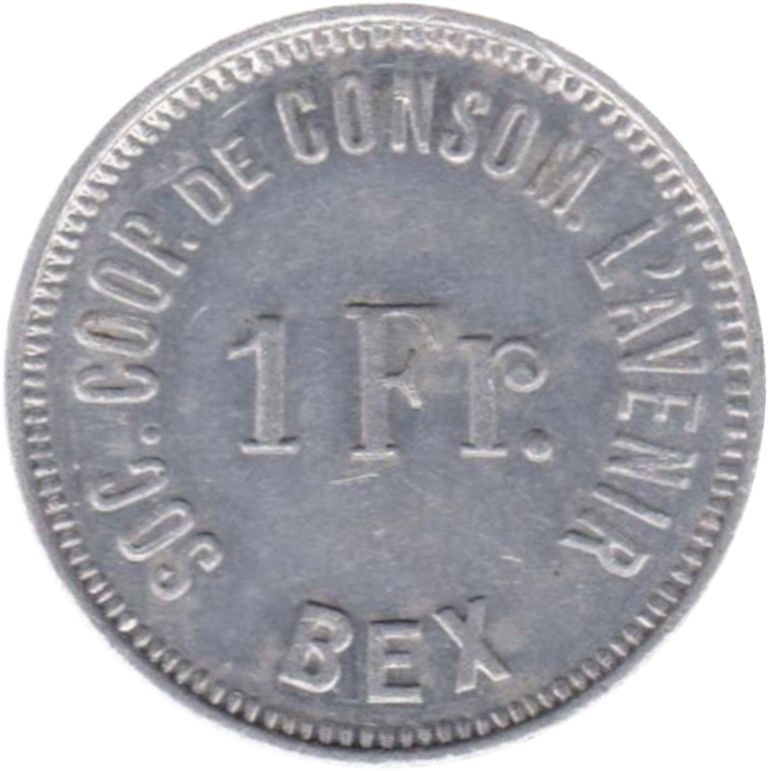 Назва: 1 франк — Société coopérative de consommation L'Avenir (Бекс)