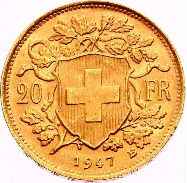 20 франків «Вренелі» (AD LEGEM ANNI MCMXXXI) 1947 – 1949 Швейцарія