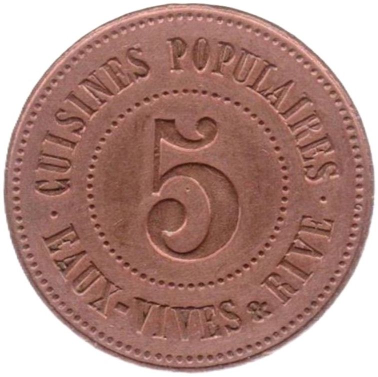 5 сантимів — Cuisines Populaires Eaux Vives та Rives (мідь)