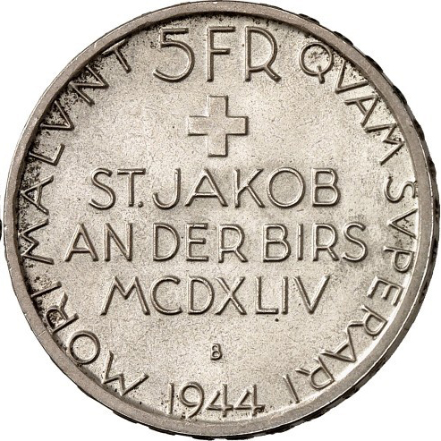 5 франків (Битва при Санкт-Якобі-ан-дер-Бірс) 1944 – 1944 Швейцарія