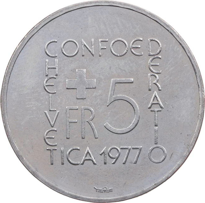 5 франків (Йоганн Генріх Песталоцці) 1977 – 1977 Швейцарія