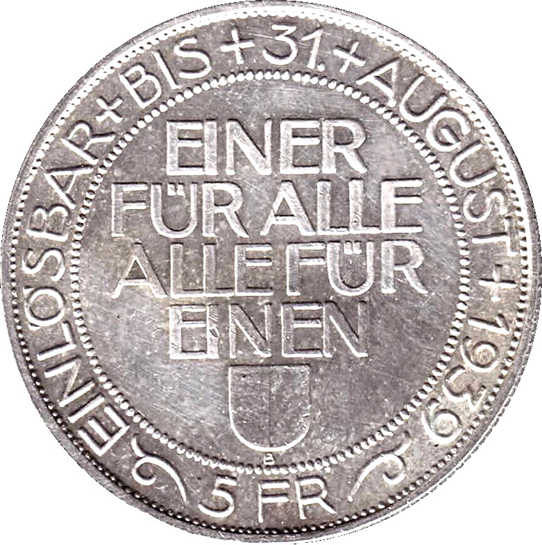 5 франків (Стрілецький фестиваль у Люцерні) 1939 – 1939 Швейцарія