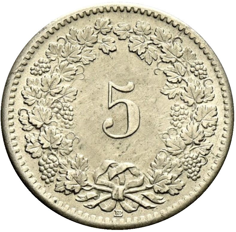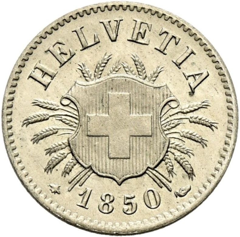 5 раппенів (герб) 1850 – 1877 Швейцарія