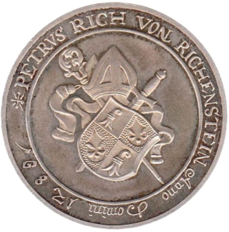 Опис: Герб, утворений червоним єпископським посохом єпархії Базеля та слоновою кісткою з герба родини Райх фон Райхенштайн. Позаду — митра, скіпетр і меч.