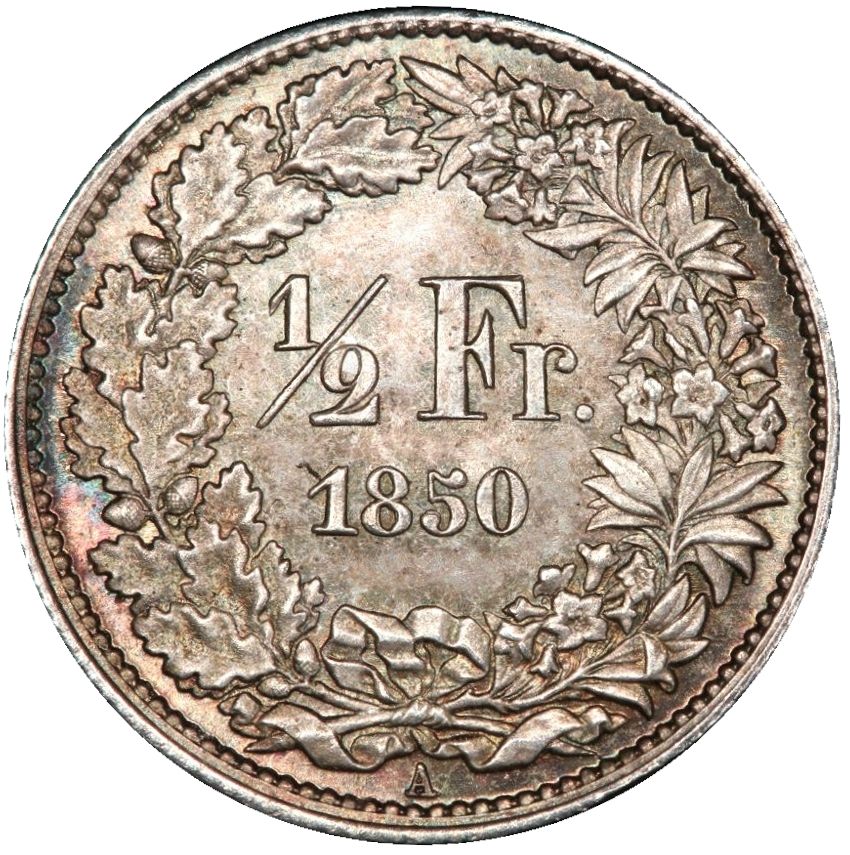 ½ франка (Гельвеція сидяча) 1850 – 1851 Швейцарія