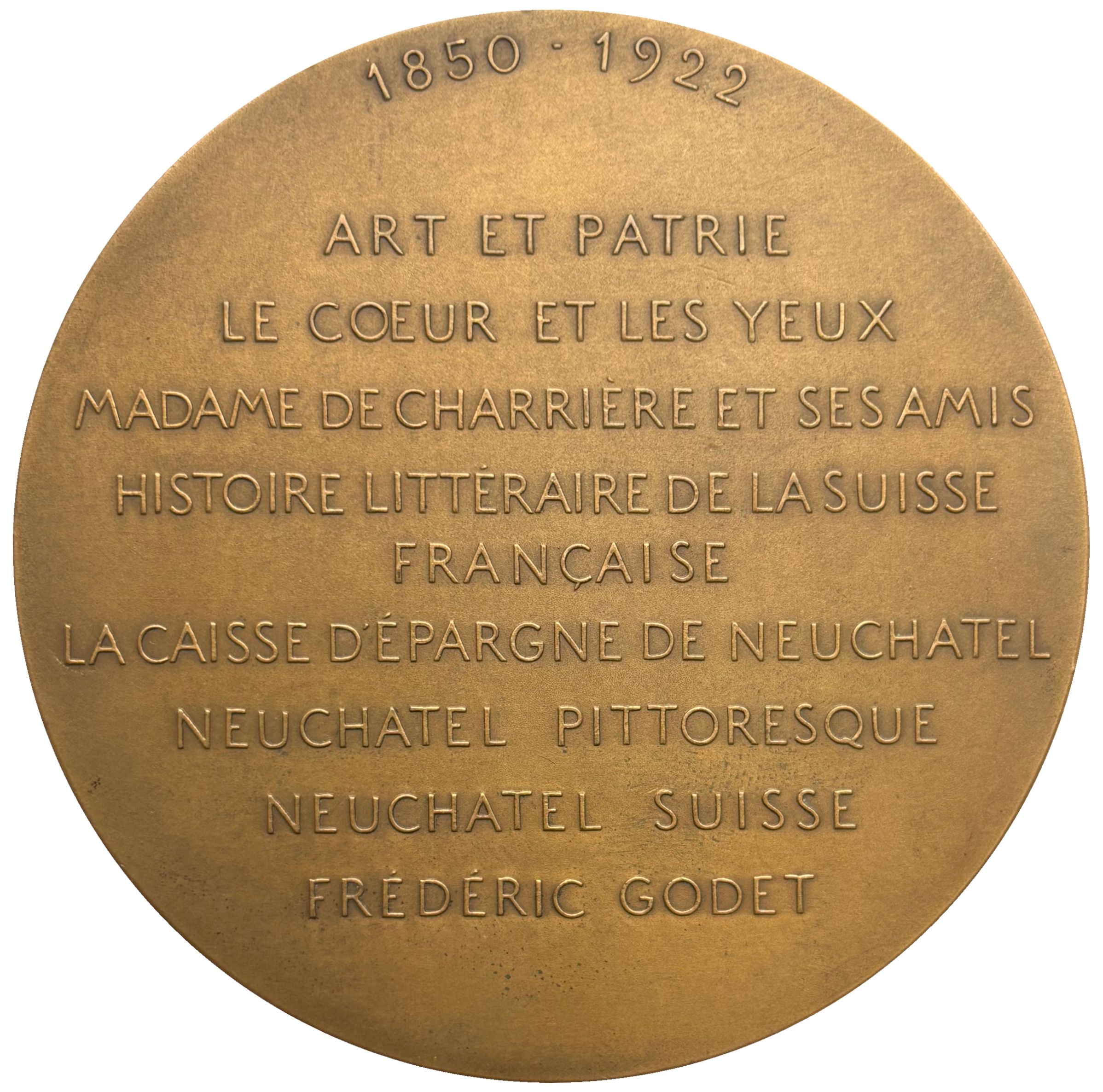 Опис: Праворуч — бюст Філіпа Годе. Пір'я, прикріплене до герба дому Невшателя.