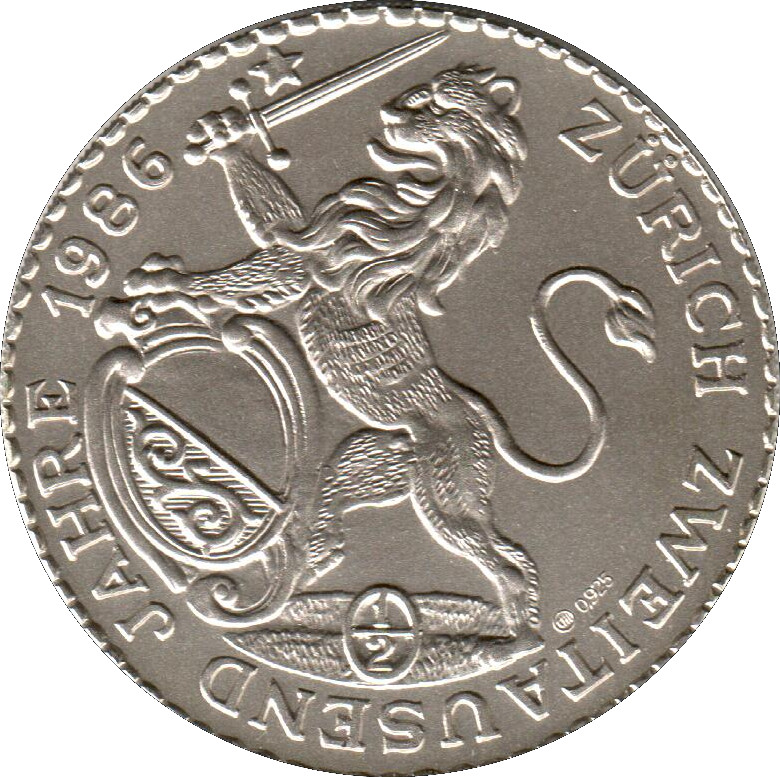 Назва: ½ талера (Цюрих; 1986 рік, перекарбування)