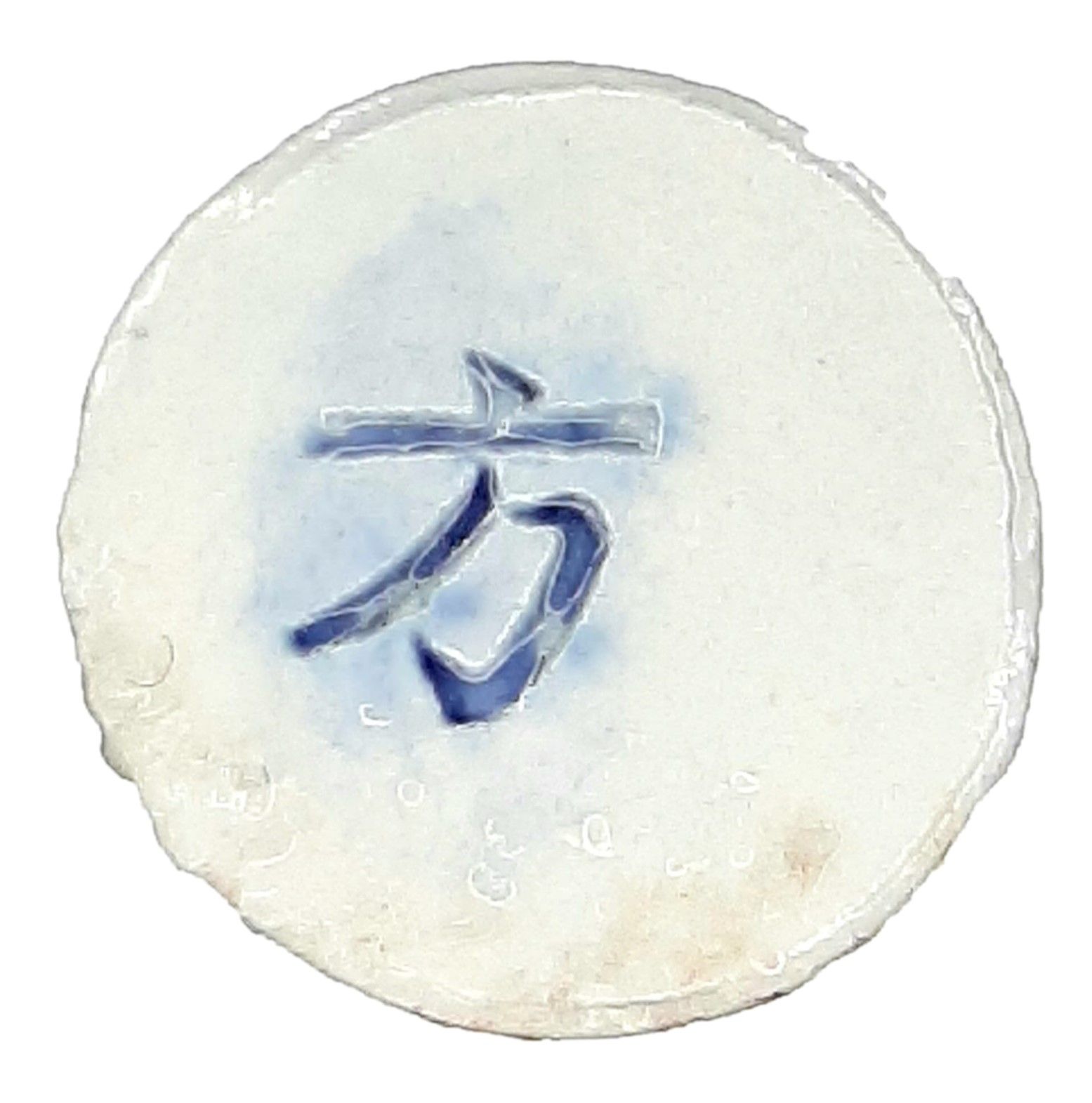 Опис: Два рельєфні китайські ієрогліфи на глазурованому білому полі. На аверсі всередині рельєфного обідка розміщено рельєфний напис «xie xingi», що означає «гармонійне сходження».