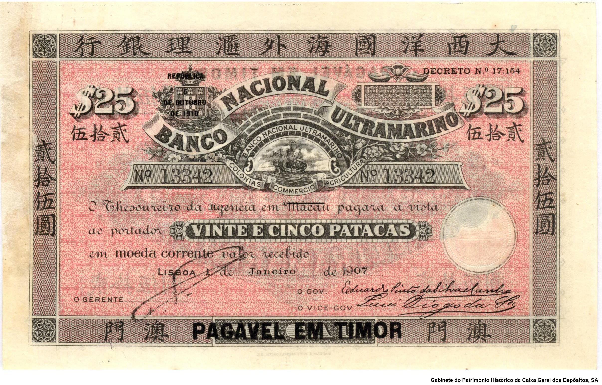 Назва: 25 патак (штамп PAGAVEL EM TIMOR над «25 патак», Макао)