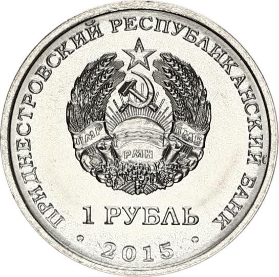 Опис: У центрі — державний герб Придністровської Молдавської Республіки; по краю — напис: у верхній частині — «ПРИДНЕСТРОВСКИЙ РЕСПУБЛИКАНСКИЙ БАНК» (Придністровський республіканський банк), внизу - рік випуску «2015»; внизу під гербом - номінал «1 РУБЛЬ» (1 рубль).