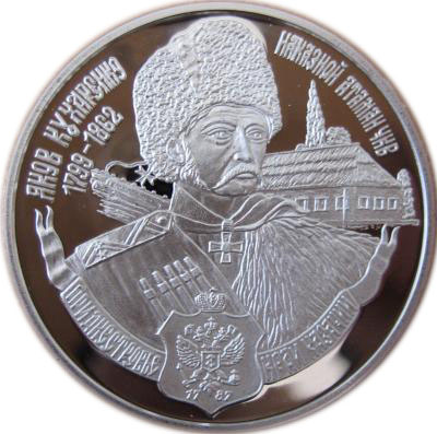 Опис: Збільшений портрет Якова Кухаренка, отамана Чорноморського козацького війська, в козацькій формі з еполетами, почесним хрестом на грудях і рушницею за спиною на тлі козацького житла. Написи вздовж краю такі: «ЯКОВ КУХАРЕНКО 1799-1862» (YAKOV KUHARENKO 1799-1862) — ліворуч, «НАКАЗНОЙ АТАМАН ЧКВ» (THE ATAMAN OF BSCA) (абревіатура від THE BLACK SEA COSSACK ARMY) — праворуч. Напис «ПРИДНЕСТРОВЬЕ - КРАЙ КАЗАЧИЙ» (Придністров'я - край козацький) російською мовою написаний на стилізованій стрічці вздовж краю під зображенням, а зображення емблеми Чорноморської козацької армії з написом «1787», що вказує на рік утворення Чорноморської козацької армії, знаходиться в центрі стрічки.
