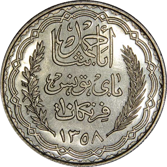 10 франків — Ахмад II (Essai) 1939 – 1939 Туніс