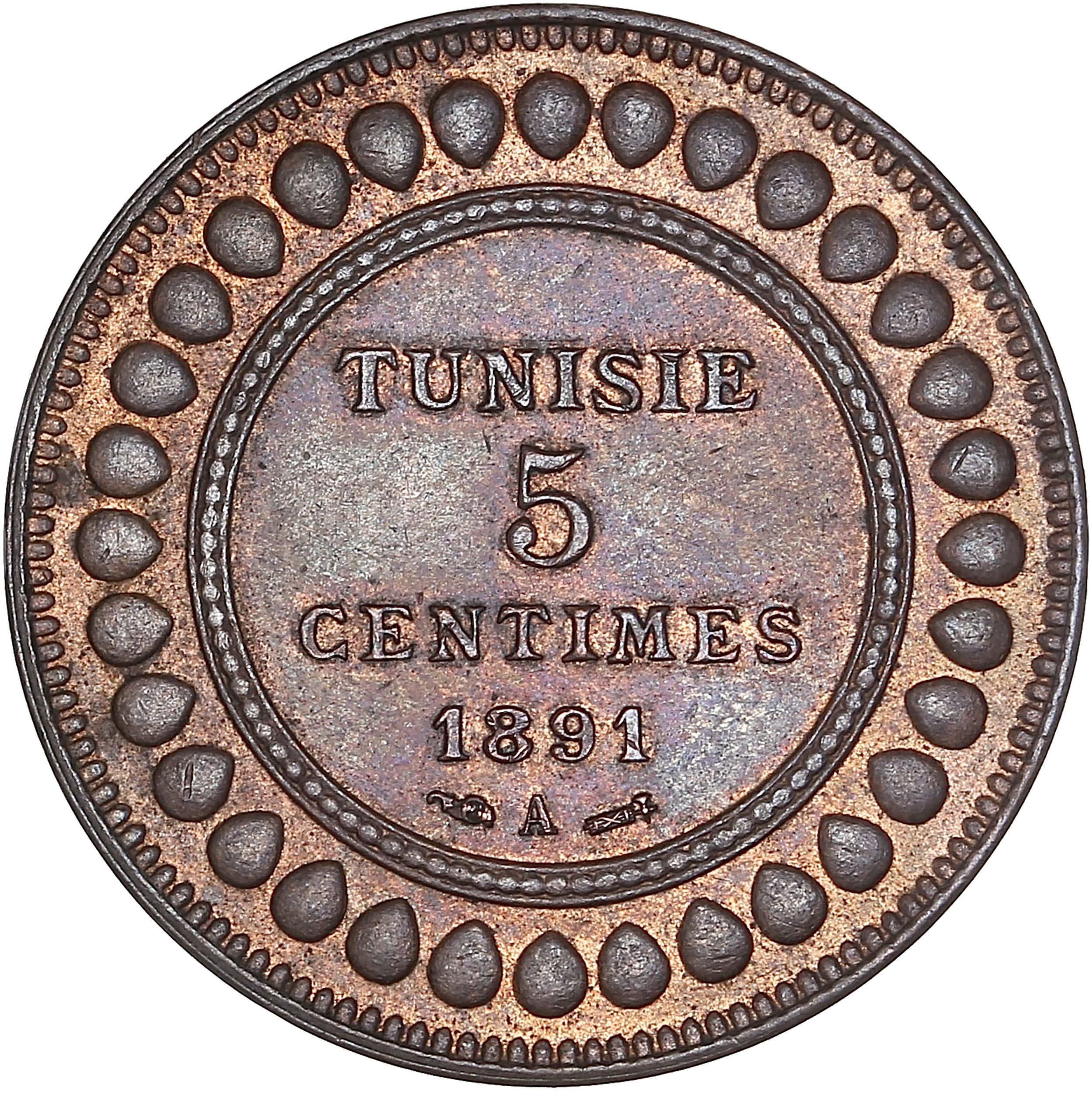 5 сантимів — Алі III 1891 – 1893 Туніс