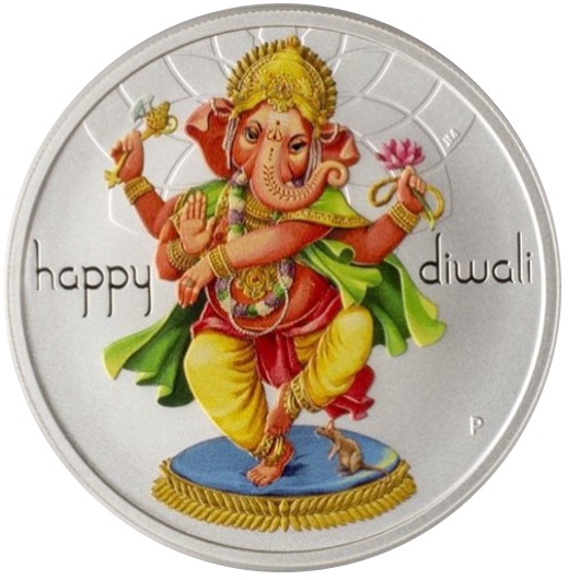 Опис: На зворотному боці монети зображено кольорове зображення бога Ганеши в танцюючій позі. На зворотному боці також розміщено ініціали дизайнера (Дженніфер МакКенна) та знак монетного двору Перта.