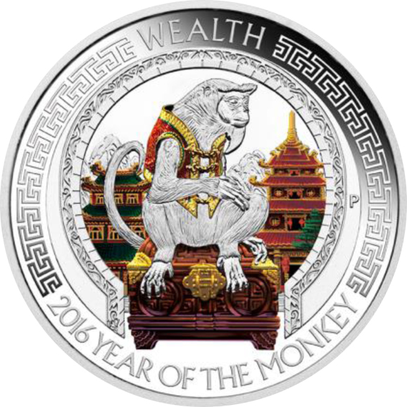 1 долар — Єлизавета II (Рік Мавпи: Багатство) 2016 – 2016 Тувалу