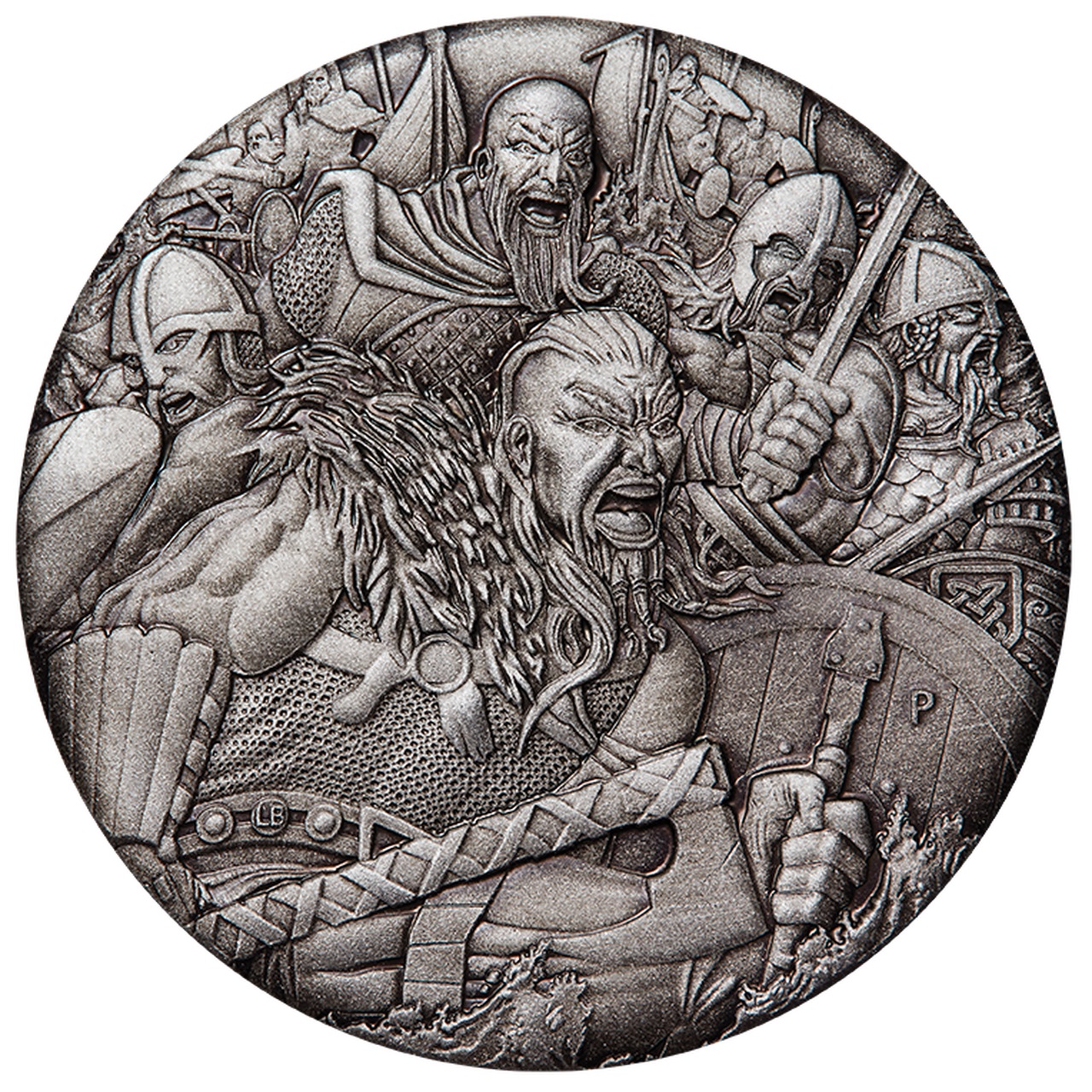 Опис: Вікінги-воїни, що шалено мчать по воді. Кожен воїн грізно реве, щоб налякати своїх жертв, а їхні обладунки та зброя зображені з надзвичайною детальністю.